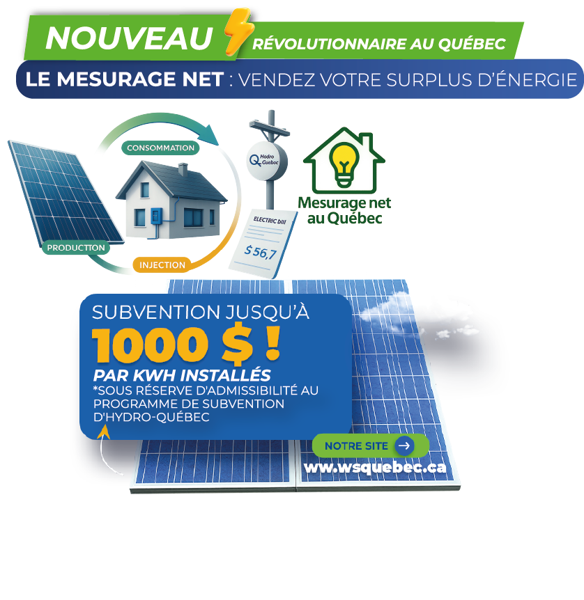 WS Québec prend en charge l’ensemble des des papiers pour vous. Nous gérons pour vous la demande de mesurage net auprès d’Hydro-Québec, l’obtention des permis et toutes les formalités locales nécessaires.